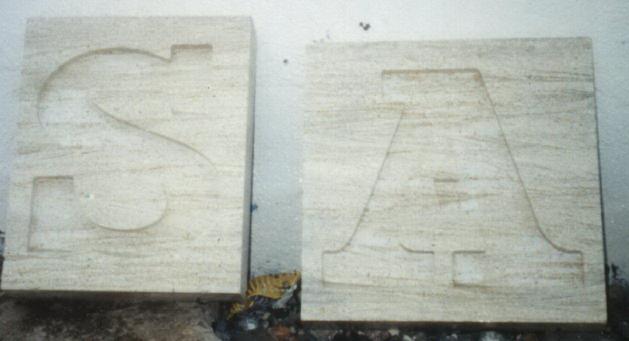 Letras vaciadas 20 m/m de profundidad sobre piedra